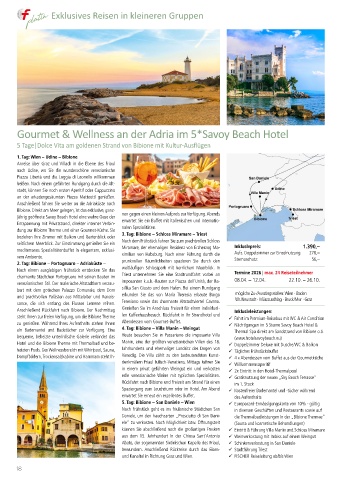 Anschließend Rückfahrt nach Bibione. Der Nachmittag Genießen Sie im Anschluss Freizeit für einen individuel- Inklusivleistungen:
