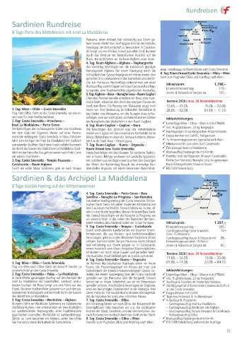 3. Tag: Costa Smeralda – Westküste – Alghero 7. Tag: Costa Smeralda – Olbia 4 Ausflüge lt. Programm:
