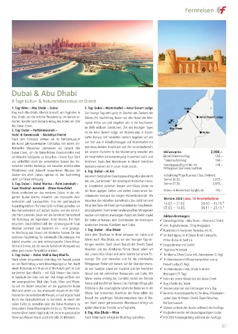 Heute entdecken wir das moderne Dubai: In der ele- mit ihren üppigen Gärten und weiten Oasen einen fas- Storno- & Reiseschutz Sorglos ab: 195,–