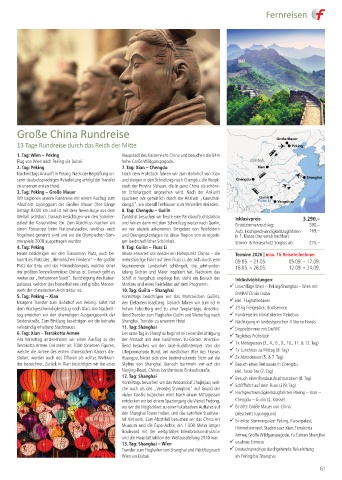 dem Hochgeschwindigkeitszug nach Xian. Am Nachmit- hohen Fubo-Berg und zu einer Teeplantage. Anschlie- 23 kg Freigepäck, Bordservice